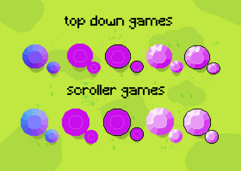 - 2 angles: to use for scroller (facing camera) & top-down (slight vertical angle) games!